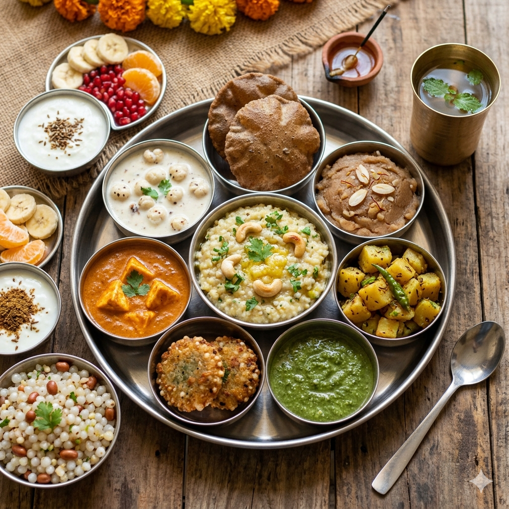 6. फलाहारी थाली: फल खाना व्रत में सबसे शुद्ध माना जाता है। आप इसमें सेब, केला, पपीता और अनार जैसे फल जोड़ सकते हैं। दही या दूध के साथ यह और भी अच्छा लगता है।