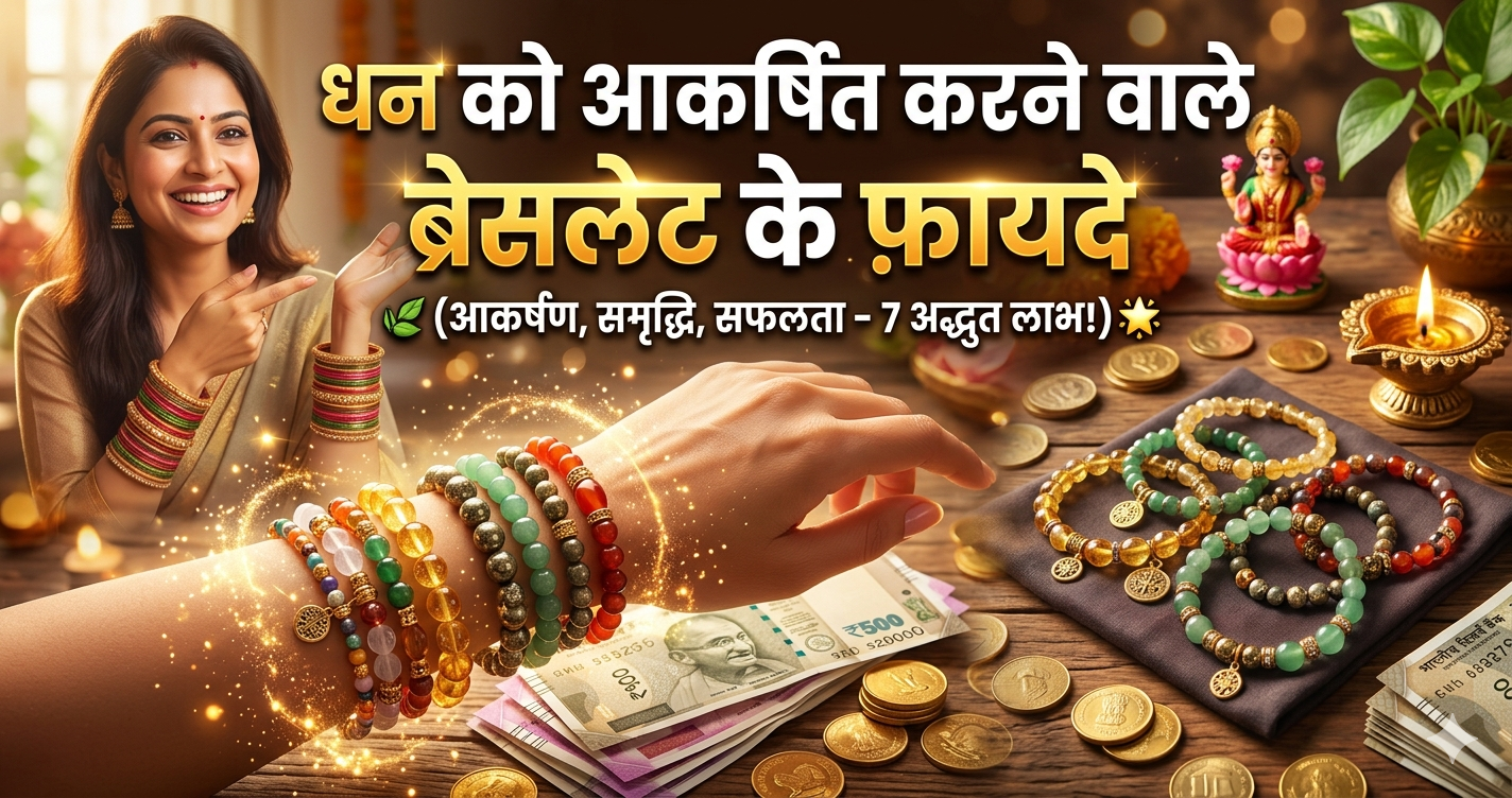 वास्तु शास्त्र के अनुसार रुद्राक्ष, सिट्रीन, ग्रीन अवेंचुरिन, क्रिस्टल और तांबे के ब्रेसलेट धन आकर्षित करने में सहायक होते हैं। लेकिन ये केवल सहायक उपाय हैं। असली सफलता आपकी मेहनत, सही निर्णय और सकारात्मक सोच पर निर्भर करती है।