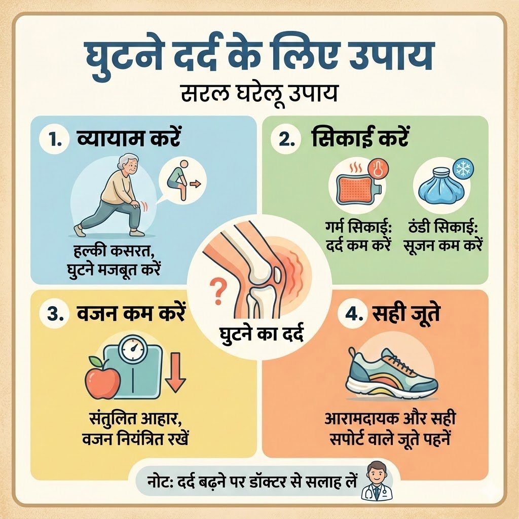 ज्यादा मेहनत या गलत तरीके से बैठना: लंबे समय तक खड़े रहना, ज्यादा सीढ़ियाँ चढ़ना या गलत मुद्रा में बैठना भी घुटनों में समस्या पैदा कर सकता है।