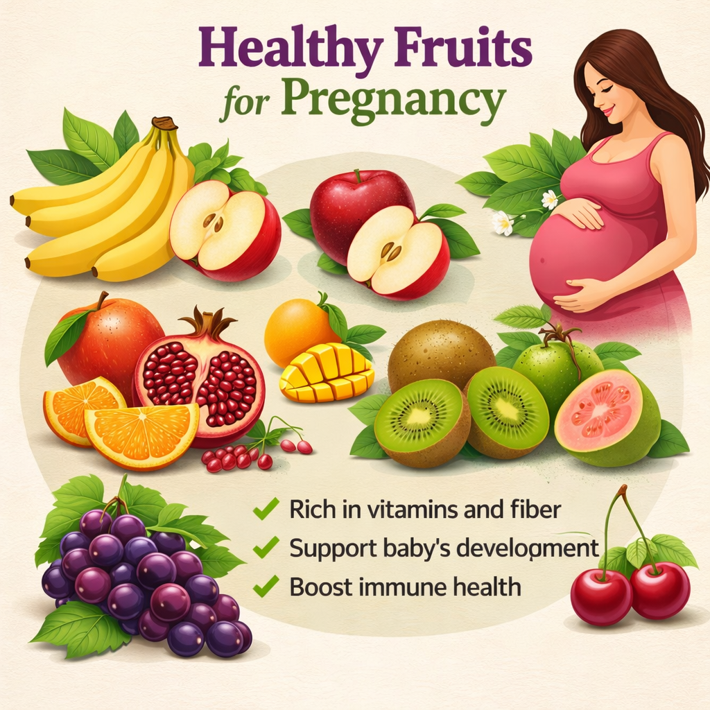 गर्भावस्था (Pregnancy) के दौरान सही खाना खाना माँ और बच्चे दोनों के लिए बहुत जरूरी है। इस समय शरीर को ज्यादा पोषण, विटामिन और मिनरल्स की जरूरत होती है। फल (Fruits) अपने आप में विटामिन, फाइबर और एंटीऑक्सीडेंट्स से भरे होते हैं, इसलिए कुछ खास फलों का सेवन गर्भावस्था में काफी फायदेमंद हो सकता है। यहाँ पर बताया गया है कि प्रेग्नेंसी में कौन से फल खाने चाहिए और उनके क्या लाभ हैं।