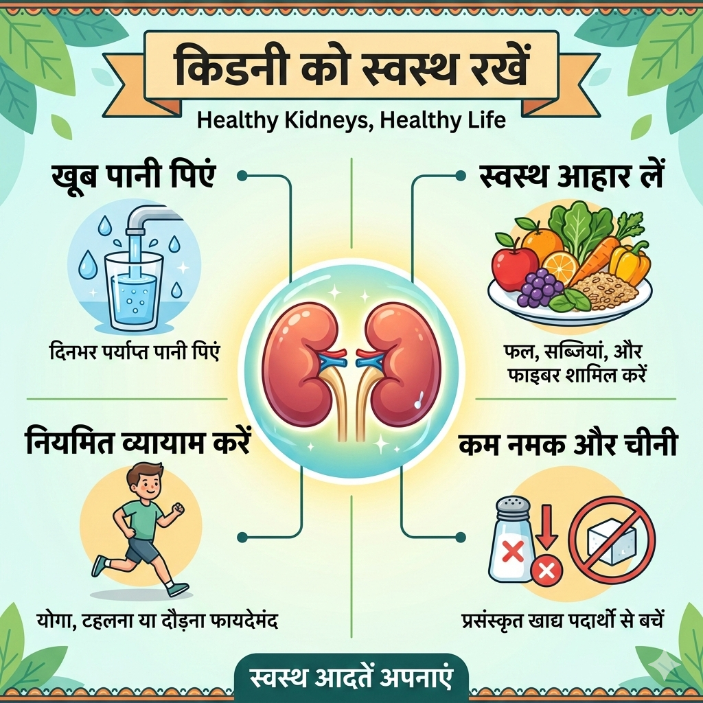किडनी हमारे शरीर का एक अहम अंग है। यह शरीर से हानिकारक पदार्थों और अतिरिक्त पानी को बाहर निकालने में मदद करती है। इसके अलावा, किडनी हमारे शरीर के खनिजों और तरल पदार्थों के संतुलन को भी बनाए रखती है। जब किडनी ठीक से काम नहीं करती, तो कई गंभीर समस्याएँ पैदा हो सकती हैं। इसलिए, इसे स्वस्थ रखना बहुत जरूरी है। सही खान-पान और कुछ अच्छी आदतें अपनाकर हम अपनी किडनी को लंबे समय तक स्वस्थ रख सकते हैं।