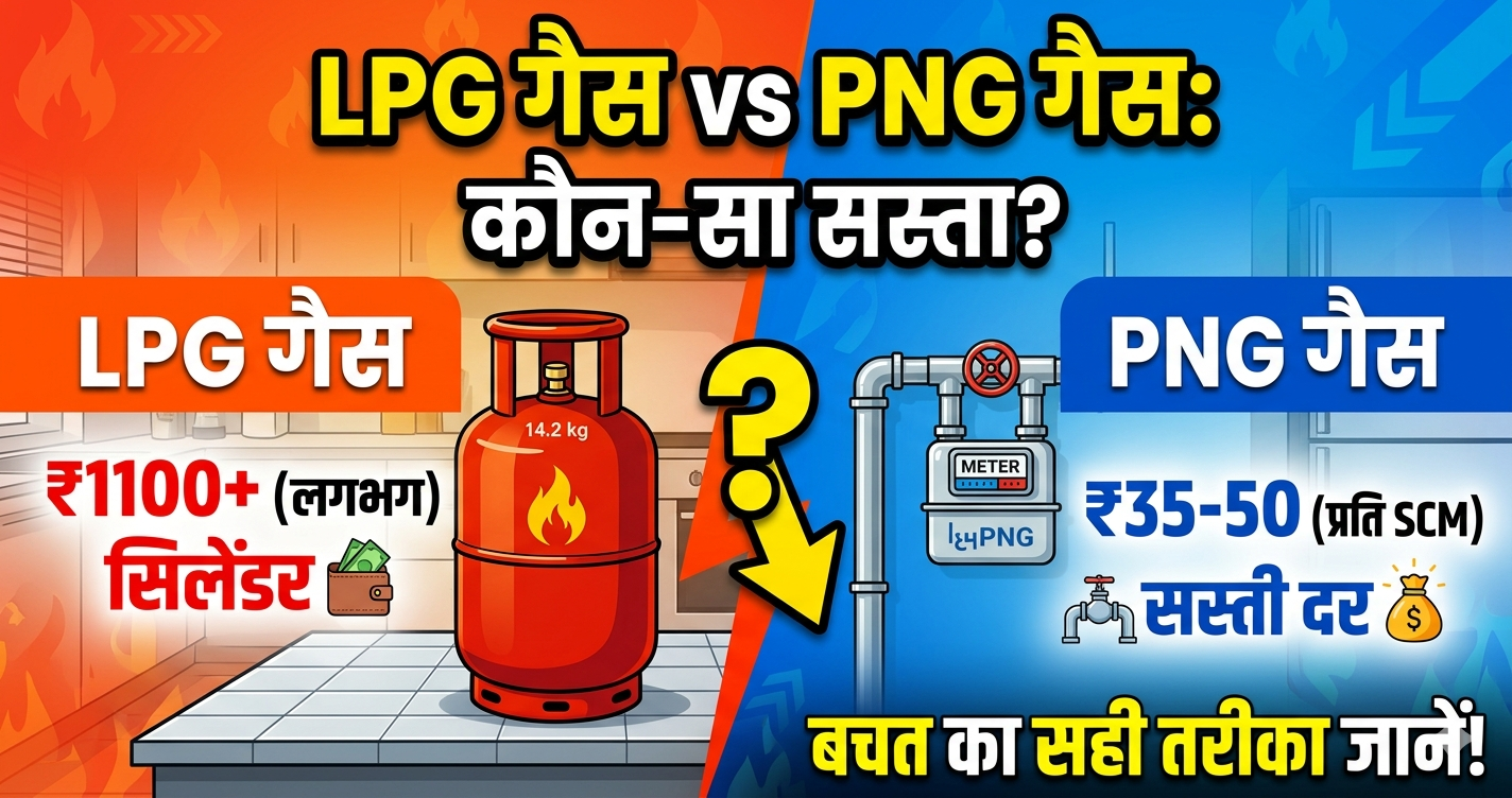 LPG गैस और PNG गैस आजकल घरों, होटलों और उद्योगों में सबसे ज्यादा इस्तेमाल होने वाले ईंधन हैं। ये दोनों गैसें खाना पकाने और दूसरे कामों के लिए काफी सहायक हैं। लेकिन लोगों के मन में यह सवाल अक्सर उठता है कि LPG और PNG में से कौन सी गैस सस्ती है। इस सवाल का जवाब केवल कीमत से नहीं, बल्कि इसके उपयोग, सुविधा, सुरक्षा और लंबी अवधि के खर्च को ध्यान में रखकर समझा जाना चाहिए।