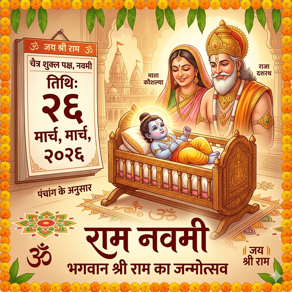 हिन्दू धर्म के अनुसार राम नवमी शुक्ल पक्ष को राम नवमी का बहुत ज्यादा महत्व माना गया हैं क्योंकि इसी दिन प्रभु श्री राम का जन्म हुआ था. पंचाग के अनुसार इस साल राम नवमी चैत्र मास के शुक्लपक्ष को 26 मार्च 2026 को मनाया जायेगा यह 11:48 बजे से प्रारम्भ होकर 27 मार्च 2026 को 10:06 बजे तक रहेगा