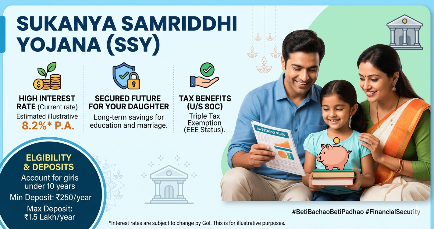 यह योजना एक छोटी बचत योजना है, जिसके तहत माता-पिता अपनी बेटी के नाम पर खाता खुलवा सकते हैं। अपने नजदीकी इंडिया पोस्ट कार्यालय या किसी अधिकृत बैंक में आसानी से खाता खोला जा सकता है। इस योजना में निवेश करने पर सरकार आकर्षक ब्याज दर देती है, जो समय-समय पर बदलती रहती है, लेकिन आमतौर पर यह अन्य बचत योजनाओं से ज्यादा होती है।