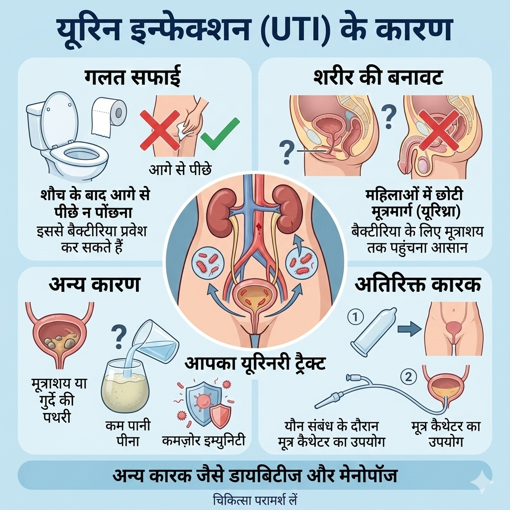 यूरिन इन्फेक्शन के कुछ प्रमुख कारण हैं:
